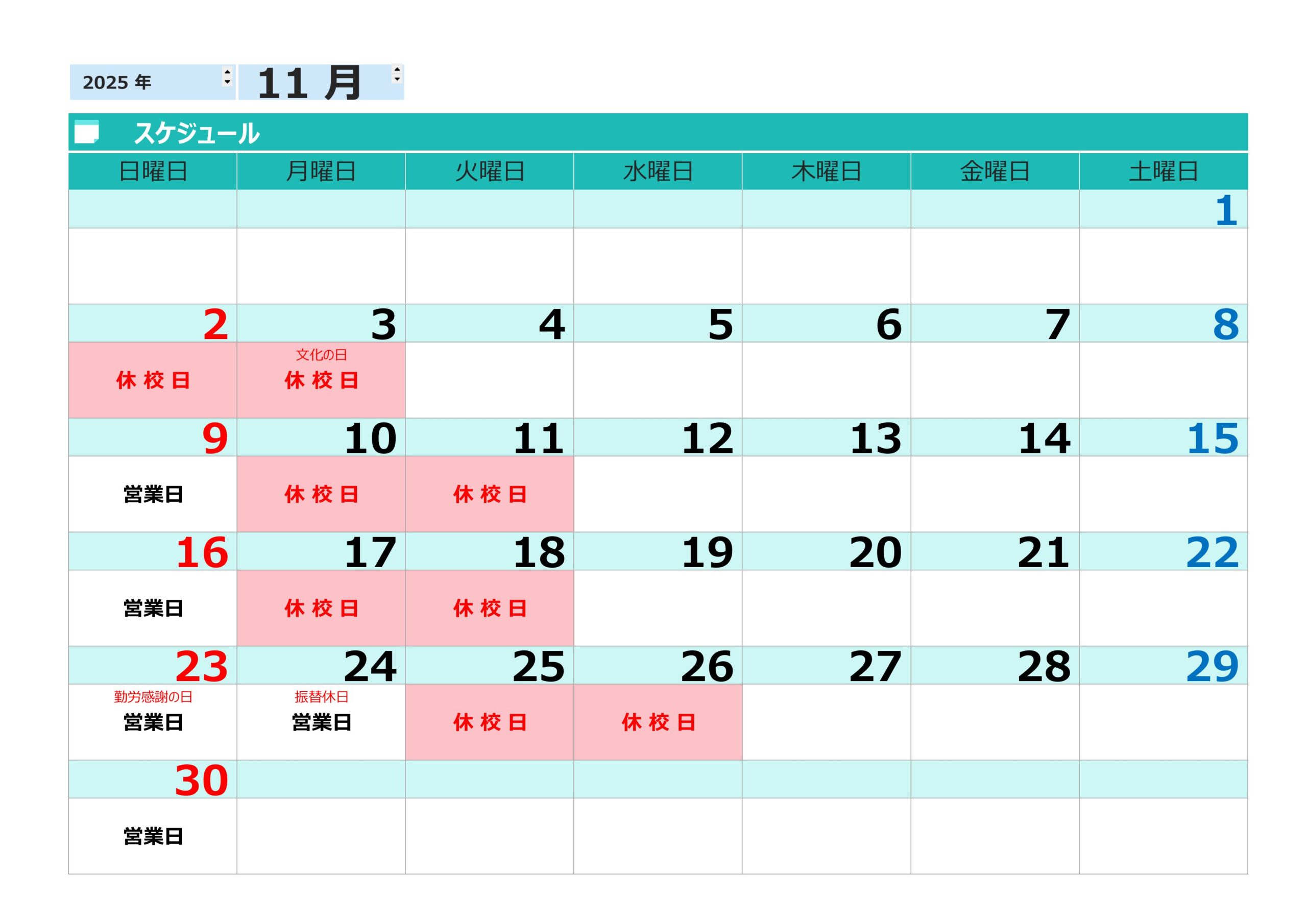 11月の営業日のご案内