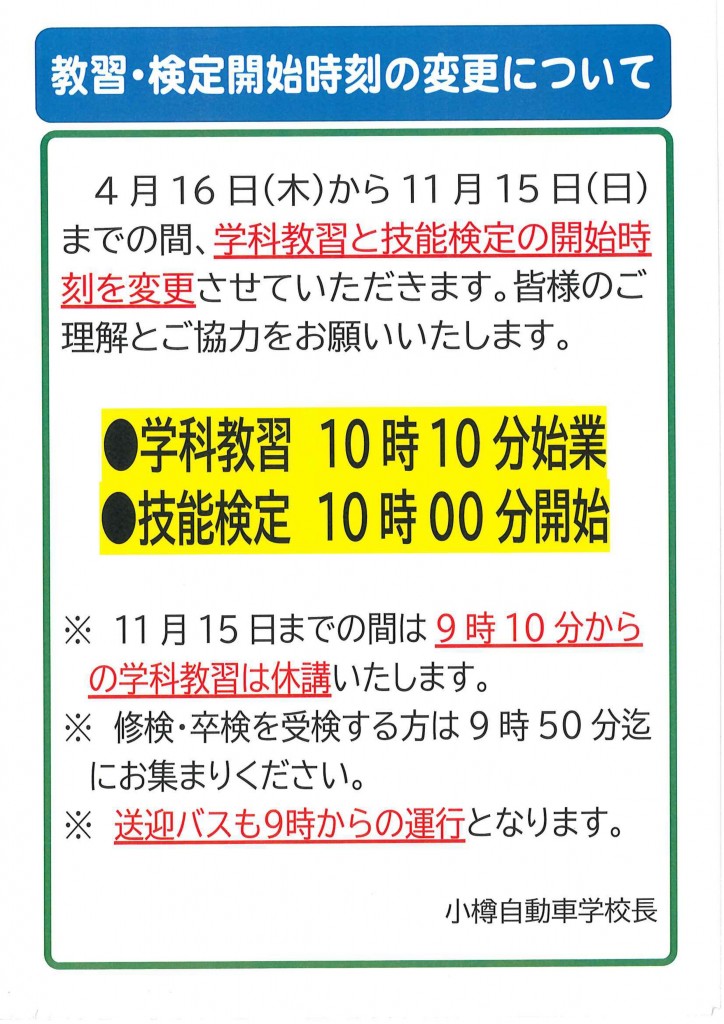 営業時間変更のお知らせ