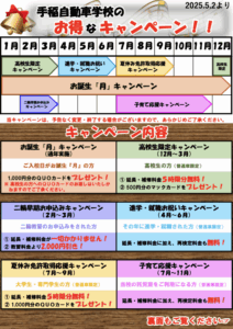 手稲自動車学校のお得なキャンペーンとご紹介特典はこちら!