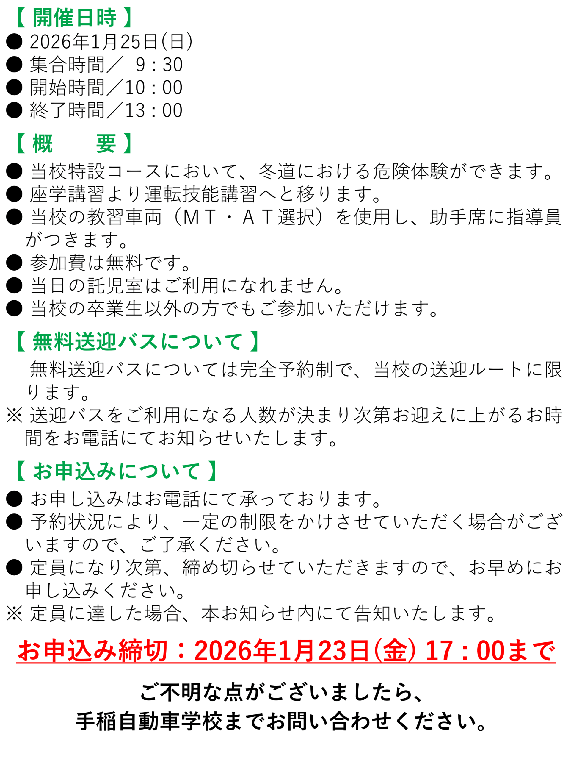 冬道安全運転講習会【2026年 1月 25日 (日) 】